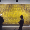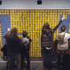 You can create your own pixel art drawing on the website (here) which will be broadcast in the exhibition space. Personally, I have only seen that happen once – people are usually happy to leave their own little mark, or very young children tend to take a load of the blocks off the wall to stack them on the floor.