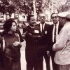 Mario Vargas Llosa and his wife Patricia, Octavio Paz (behind her), Carlos Fuentes, Juan Carlos Onetti, Emir Rodríguez Monegal and Pablo Neruda. 1966
