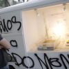 Installation by Francisco “Papas Fritas” Tapia in which he displays the ashes of $500 million worth of burned student debt papers