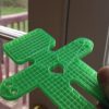 critical toy rapid prototype rendered from TinkerCAD file on a MakerBot at the Concoctory, a new hackerspace in southern Denver. I stopped the build about one-third of the way through so that I could experience the interior architecture. The model is 30mm thick, so this is roughly 10mm thick. I think I have to adjust the proportions to lengthen the “torso” without changing the height. This is about the size (height, width) that I would like the finished toys. I may want the thickness to be 20mm, so I will have to adjust the that. There is also some internal geometry that I will need to add.