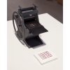 Entitled “Re-inventing the Wheel”, this miniature 3D printing press is fully functional, designed from blueprints for a full-size intaglio press. Here, the most advanced printing technology is used to reproduce a traditional printing technology. The work is, in effect, a print that prints prints. Its 3D printed plate is written in binary code, an instructional coding system of 1s and 0s used by all computers, including 3D printers. It translates as “Print Rules!” A self-perpetuating object, the 3D printed press references an evolution in print culture that does not signal extinction but rather perpetuation. #CURRENTS2015 #3dprinting