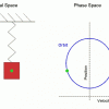 Although it may seem counterintuitive, simple harmonic motion (left) and simple circular motion (right) have a great deal in common. If one looks at an object undergoing simple circular motion, it is clear that there are two scales to which an extreme can be reached – a polarized left/right, and an equally polarized up/down. However, looking from the side – only the top and bottom can be seen, and by looking at circular motion from the side it looks exactly like simple harmonic motion.