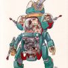 Here’s a smaller mech with some kitties inside. I imagine that the two lower guys in the cockpit each control one arm which has got to be kind of tough. Also the mechanic guy probably does not enjoy his job too much.