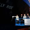 The Navy names a ship after Sally Ride, the first American woman in space. Pictured above, the ship being christened by Dr. Tam O’Shaughnessy, Ride’s widow,