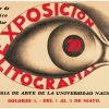 This lithograph, designed by Dosamantes in 1939, was used to advertise an exhibition held at the Galeria de Arte de la Universidad Nacional of other prints produced by the members of the TGP. Many of Dosamantes’ other lithographs from this period are monochromatic, but in this work he has chosen to make bold use of both red and black ink. He uses different fonts in alternating scales and colors to clearly delineate the necessary information about the time and place of the exhibition.