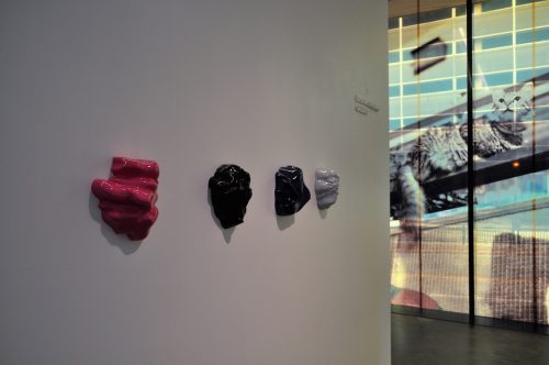 Zach Blas’s “Facial Weaponization Suite” (2011–2014) and David Hart’s “The Republic I (Version)” (2015) at ‘Now? NOW!’ (all photos by the author for Hyperallergic)