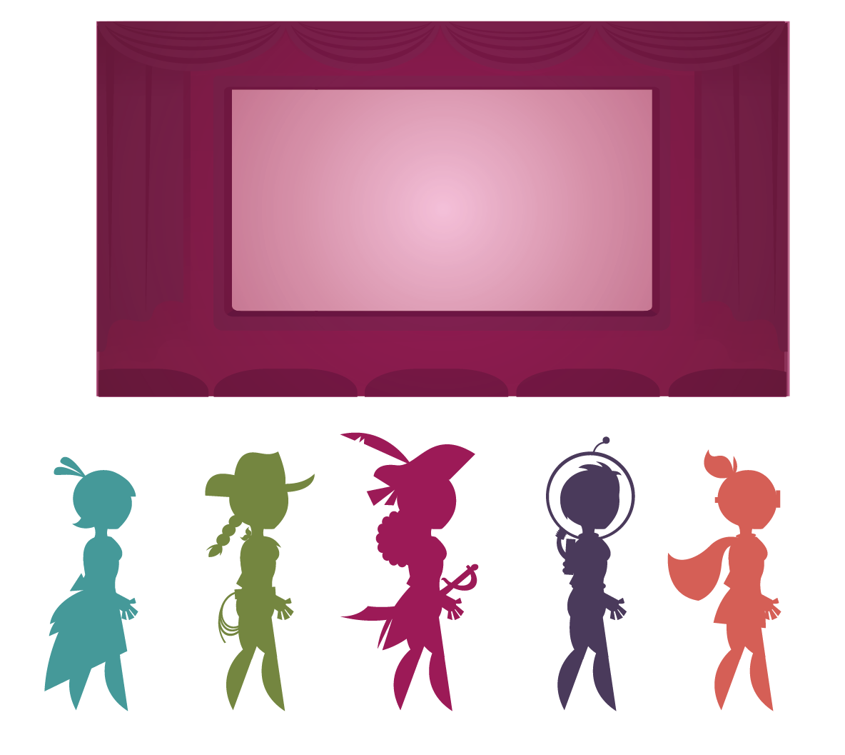 The end stage without the later effects layered on it. I tried to make everything simple as possible so not to take away from the message. Also the designs of the girls’ adult silhouettes in fun roles