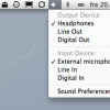 Mac OS X – Pressing Alt ⌥ and clicking the volume icon lets you select input and output device. /via jage