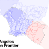 Google Earth’s indifference to existing political and judicial boundaries. The photogrammetric model of Los Angeles (dashed line) straddles Los Angeles County (in blue) and Orange County (in red), and its edge slices through no fewer than 11 Los Angeles neighborhoods and 27 cities in Southern California.