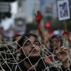 Demonstrators marched towards President Enrique Peña Nieto’s National Palace to protest his handling of the probable massacre. Hundreds of police in riot gear blocked access to the palace, where thousands of protesters gathered to demand justice for the students who disappeared on Sept. 26.