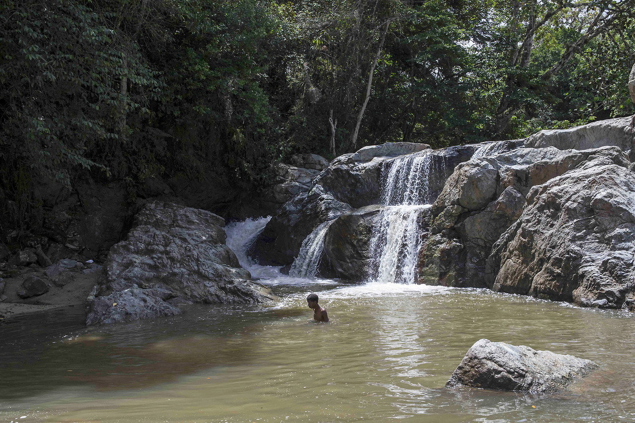 A boy cools down near a waterfall in Loma de Cabrera, Dominican Republic, near the border with Haiti. Local legend has it that Haitians hid in the caves behind the waterfall during the 1937 massacre.