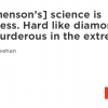 While most hard science fiction writers would concern themselves solely with explaining something like how their star destroyers make the jump to light speed, Stephenson is discussing (likely for 20 pages) how to keep the janitors on the Death Star from getting osteoporosis. His science is merciless. Hard like diamonds, and murderous in the extreme. Where most hard SF really means “a bunch of ray guns, then some talk about wormholes,” he plays with hard ballistics, hard genetics, hard sociology. And what thrills me, is that he makes it interesting. That he makes life and death in space about actual life and death — about the million things that will kill you and the two or three things that really smart people can do to stay alive.