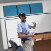 I decided to embed the live 3D video into a virtual 3D model of an office, to show a possible setting for remote collaboration / tele-presence (more on that coming soon), and to contrast the “raw” nature of the 3D video with the much more polished look of the 3D model. One of the things we’ve noticed since we started working with 3D video to create “holographic” avatars many years ago was that, even with low-res and low-quality 3D video, the resulting avatars just feel real, in some sense even more real than higher-quality motion-captured avatars. I believe it’s related to the uncanny valley principle, in that fuzzy 3D video that moves in a very lifelike fashion is more believable to the brain than high-quality avatars that don’t quite move right.