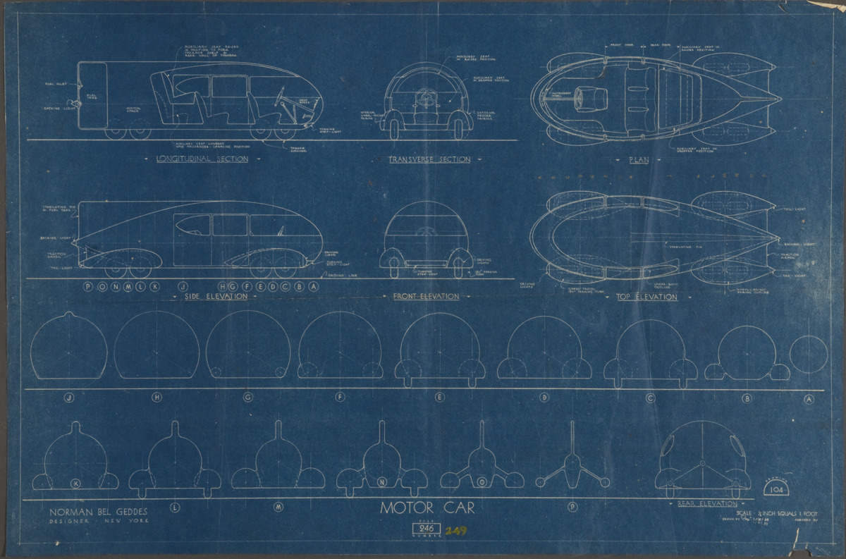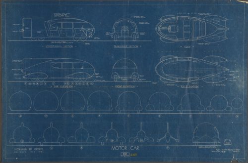 Norman Bel Geddes. “Motorcar No. 9 Blueprint.” Ca. 1932.