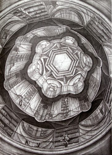 Etchings for Jorge Luis Borges Library of Babel Erik Desmazières