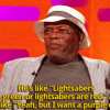 marielikestodraw: Samuel L Jackson decided that red and green lightsabers were a stupidass decision. o/ He said it, he said the thing.