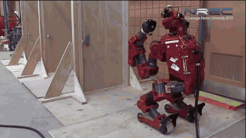 CMU’s CHIMP opens a series of doors and navigates through them during the DARPA Robotics Challenge.