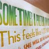 This week we showcase a new acquisition: Peter and Donna Thomas‘s presentation of Naomi Shihab Nye‘s poem Sometimes I Pretend, produced with rainbow-roll printed wood type and paper-pulp printed images on handmade paper in an edition of 35 copies signed by the artists. The work is presented as a double-sided scroll housed in a spring-loaded, retractable scroll box, with an unsharpened, No.2 Ticonderoga Beginners pencil as a dowel.