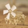 This is a miniature version of “Strandbeests”. After assembling, it walks on the wind, by hand or by blowing against the propeller.