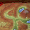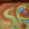 “Video of a sandbox equipped with a Kinect 3D camera and a projector to project a real-time colored topographic map with contour lines onto the sand surface. The sandbox lets virtual water flow over the surface using a GPU-based simulation of the Saint-Venant set of shallow water equations.”